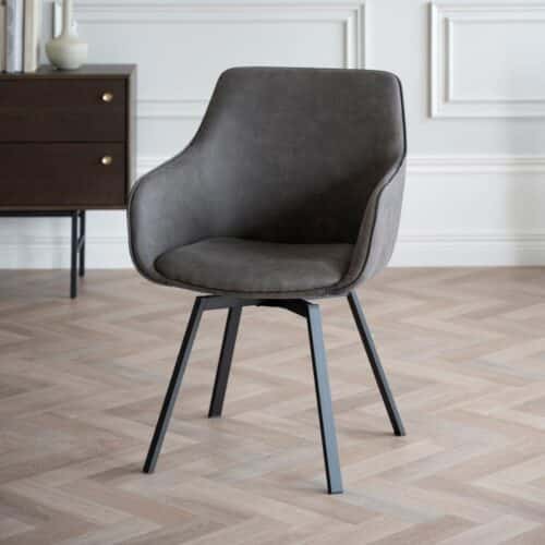 Alison karmstol i mörkgrå microfiber och underrede med snurrfunktion i svartlackad metall från Rowico.