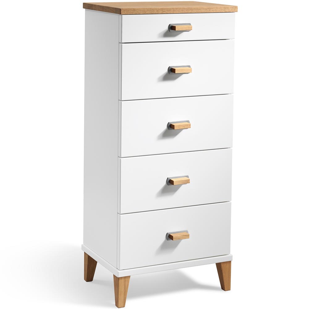 Published 21 januari, 2026 at 1000 × 1000 in Malva byrå 5 lådor smal – Vitlack /Oljad ek