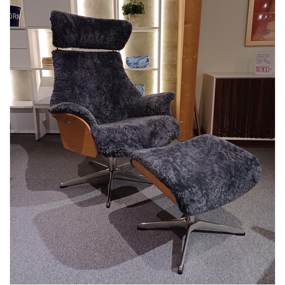 Bergen fåtölj inkl. fotpall - fårskinn sahara