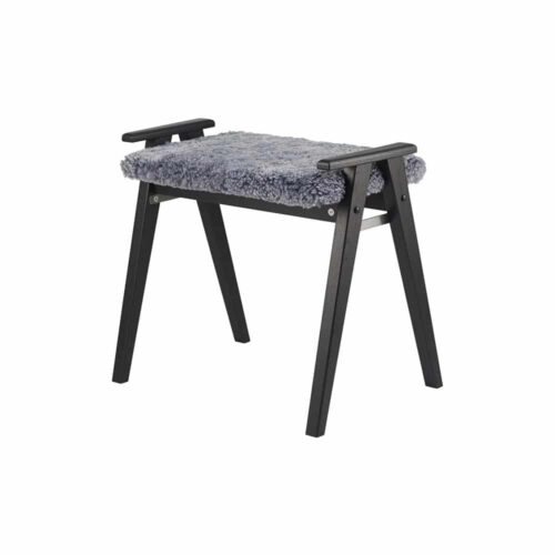 Alme pall i svartbetsad ek/ fårskinn ljusgrå från Oscarssons Möbel. Alme är en svensktillverkad liten nätt pall. En fin detalj är handtagen på sidorna. En perfekt hallmöbel att sitta på när du knyter skorna!