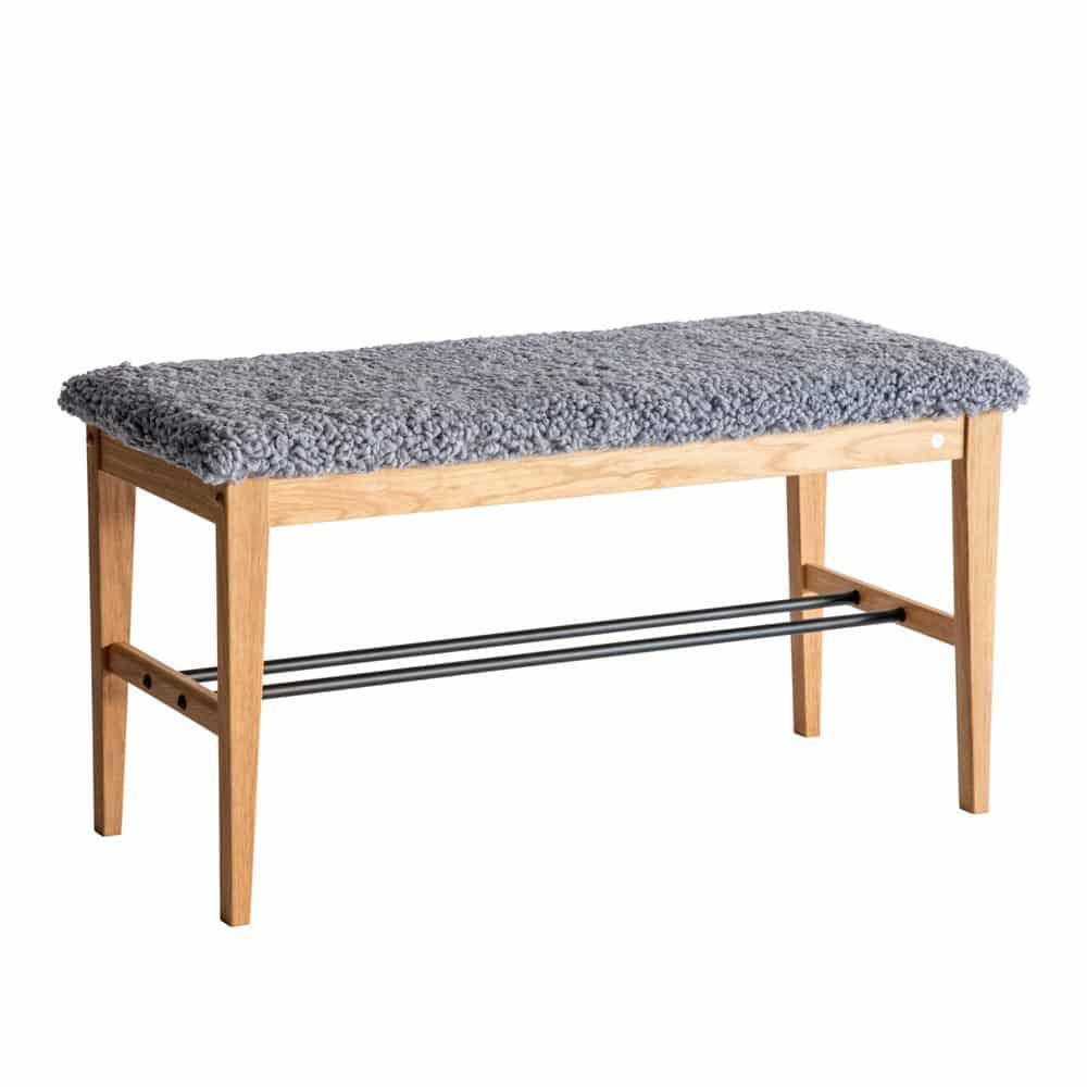 Cora bänk oljad ek/ fårskinn ljusgrå
