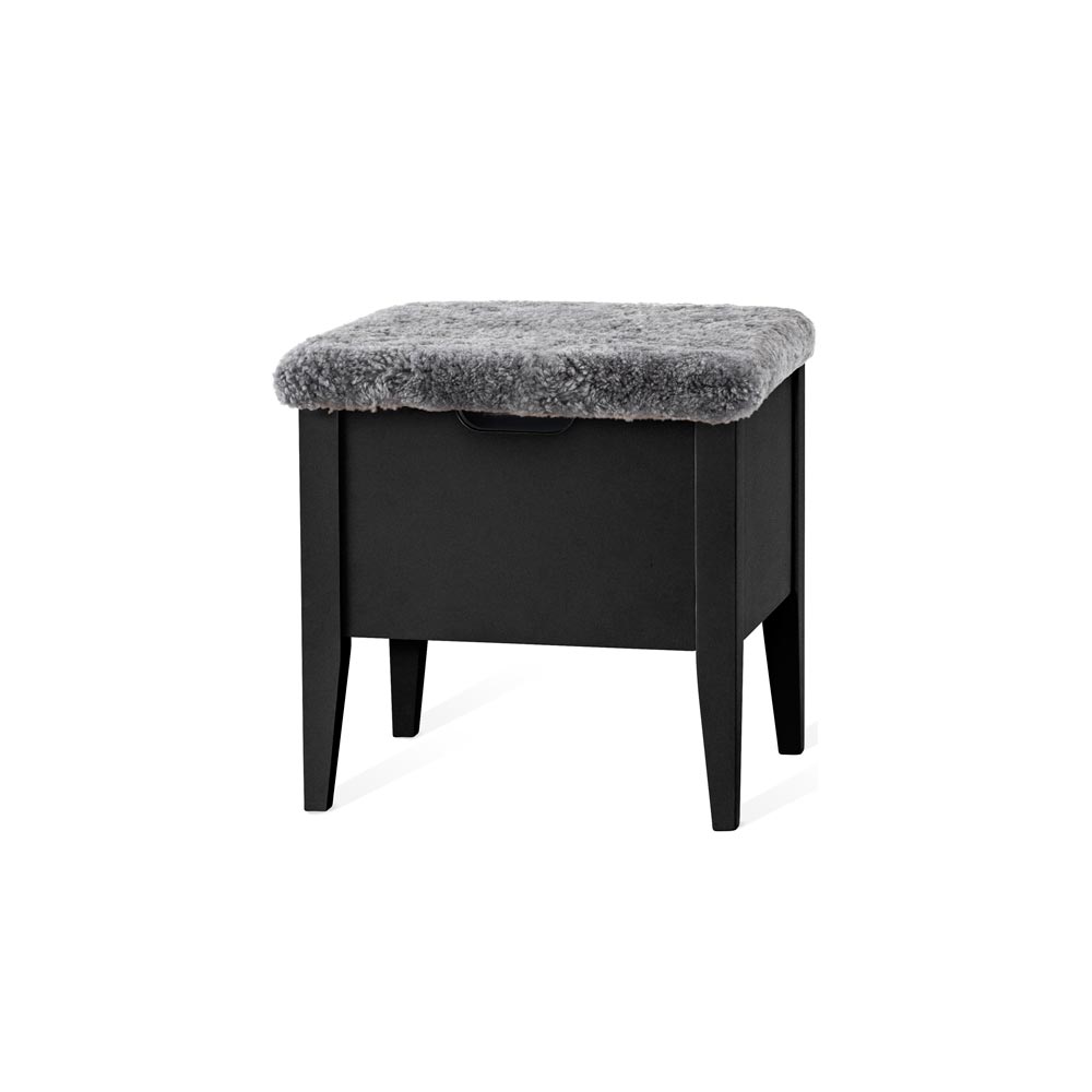 Klinte bänk 45 i svartlack/ grått fårskinn från Torkelson. Klinte är en mycket populär fabriksmonterad bänk med en fin kvalité och snygg design. Under locket finns praktiskt förvaringsutrymme!