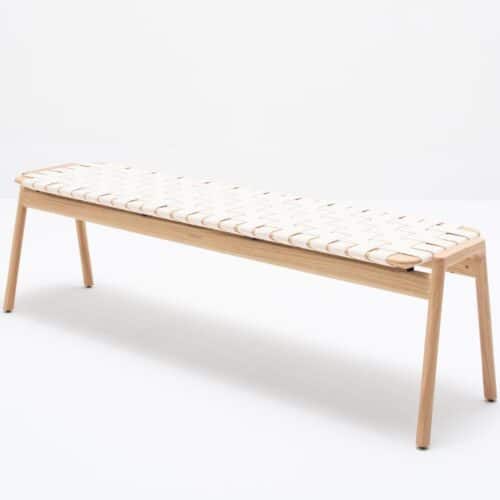 Klupa bänk finns i längd 120cm eller 160cm. Välj mellan vitoljad ek eller naturoljad ek samt bomullsband i vitt eller svart.