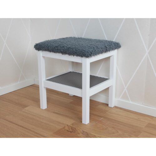 Lotta pall i vitlack/ fårskinnslook från småländska Westroth. Praktiskt med metallgaller som hyllplan för skorna!
