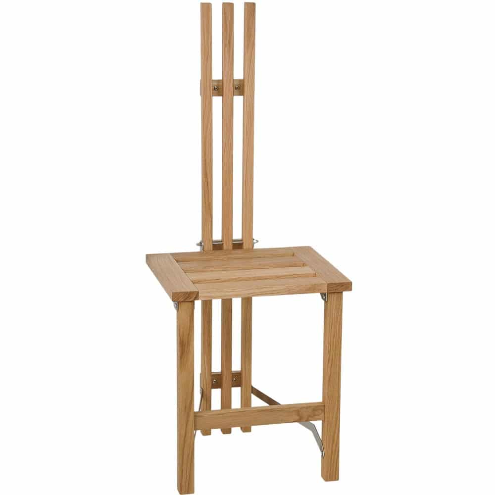 Nadja väggstol i oljad ek/ slipat stål. Exklusiv design tillverkad av småländska Oscarssons Möbel. Nadja väggstol är både en praktisk och snygg möbel. I sitt uppfällda läge bygger den endast 9cm ut från väggen!