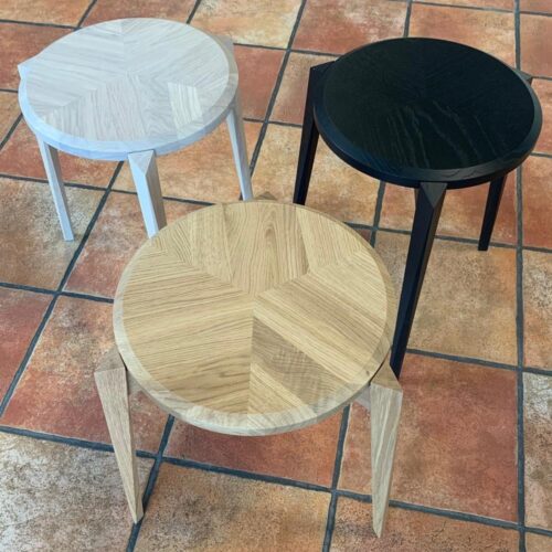 SM840 pall/ sidobord finns i oljad ek, vitoljad ek, mocca ek och svartbetsad ek.