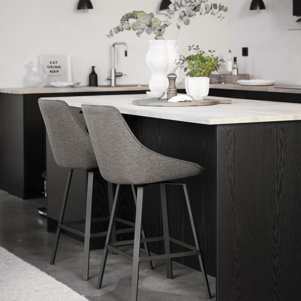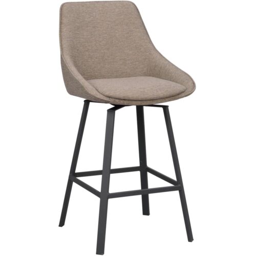 Alison barstol i mörkbeige tyg och underrede med snurrfunktion i svartlackad metall från Rowico.