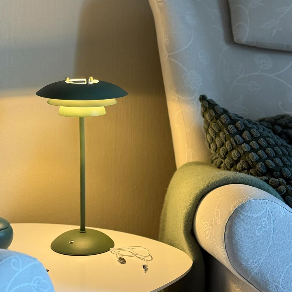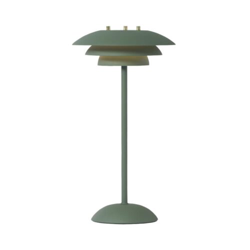 Epsilon recharge bordslampa är en snygg portabel och dimbar lampa i grön mattlackad metall från Aneta belsyning. Lampan kan användas utomhus men laddas och förvaras inomhus. Lampans ljustid varierar beroende på vald ljusstyrka.