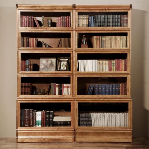 Dörrar i glas eller trä, som fälls upp och skjuts in när man ska öppna. Kassetterna finns i olika storlekar; pärmvitrin, högvitrin, lågvitrin, hörnvitrin. Inbyggd sekretär, bardel, lådor m.m.