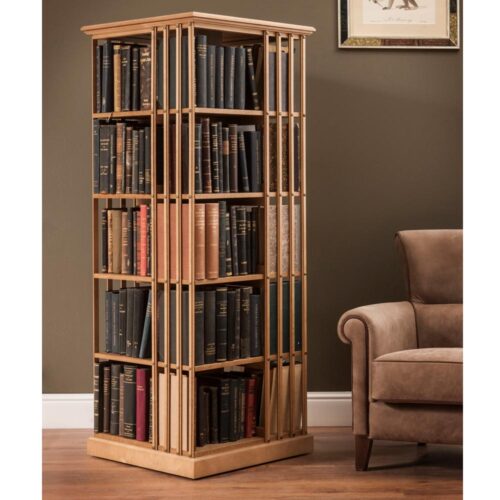 Boknäs Karusellhylla 4 i färg 02 mellanbrun. Finska Boknäs tillverkar klassiska möbler med elegans och kvalité. Boknäs Karusellhylla snurrar runt på sin plats så du enkelt kan leta upp din favoritbok!