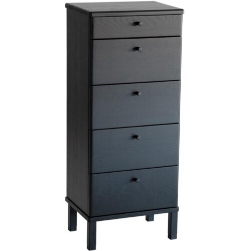 Cora byrå i svartbetsad ek med 5 lådor från Oscarssons. Detaljer i svartlackad metall. Cora ingår i en serie svensktillverkade byråer i stilren design. Med ett djup på endast 31cm passar Cora byrå perfekt i begränsade utrymmen!