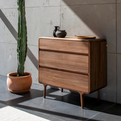 Fawn byrå i massiv oljad valnöt från Gazzda. En mycket smäcker möbel med mjuka linjer och fint arbetade trädetaljer. Soft-close i lådorna. Fawn byrå ger en härlig kvalitétskänsla!