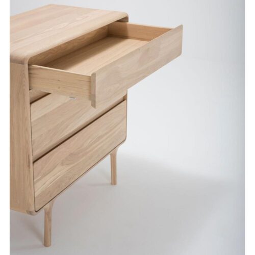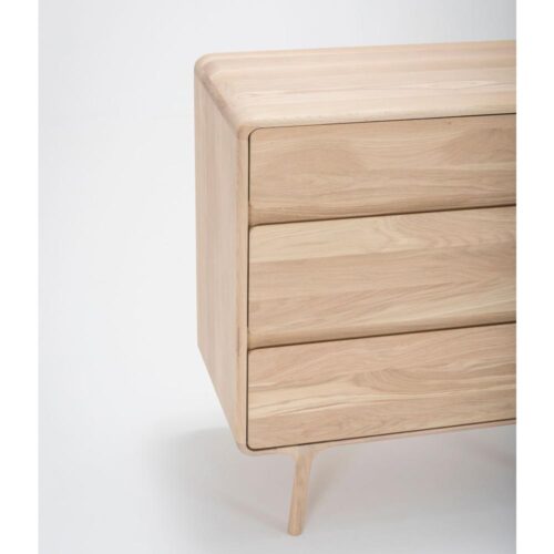 Fawn byrå i massiv vitoljad ek från Gazzda. En mycket smäcker möbel med mjuka linjer och fint arbetade trädetaljer. Soft-Close i lådorna. Fawn byrå ger en härlig kvalitétskänsla!