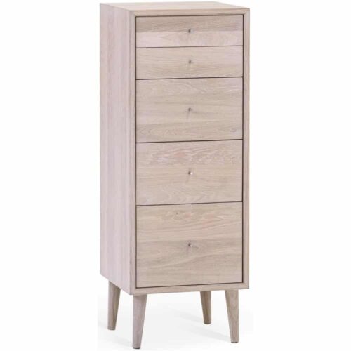 Nordik byrå 5 lådor i fanérad/ massiv vitoljad ek från Torkelson. Nordisk känsla i ljusa toner tack vare den vitoljade eken – precis som namnet avslöjar! Smäcker och stilren design som tål att tittas på länge!