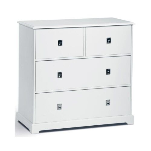 Smögen byrå 4 lådor i vitlack från Mavis. Klassisk design med handtag som påminner om en köpmansdisk.