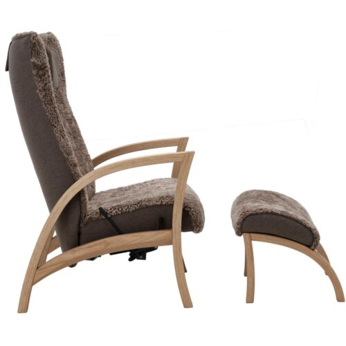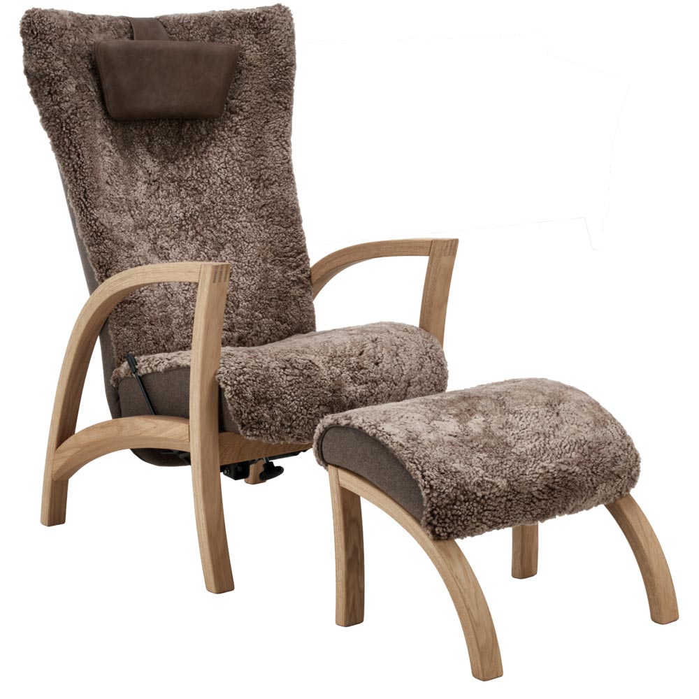 Focus fåtölj inkl. pall – fårskinn sahara/ ek