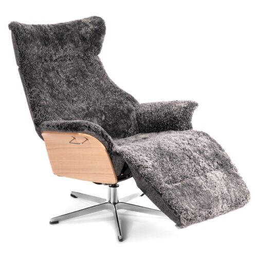 Air fåtölj med fotstöd – fårskinn charcoal/ ek