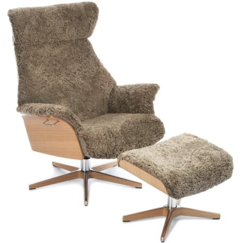 Air fåtölj & pall – fårskinn sahara/ ek