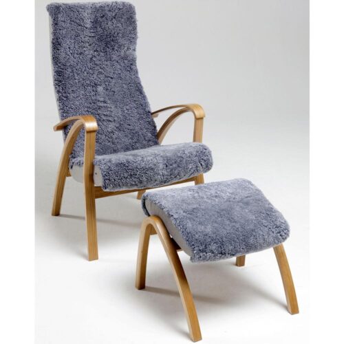 Bogart fåtölj & pall – grått fårskinn/ ek