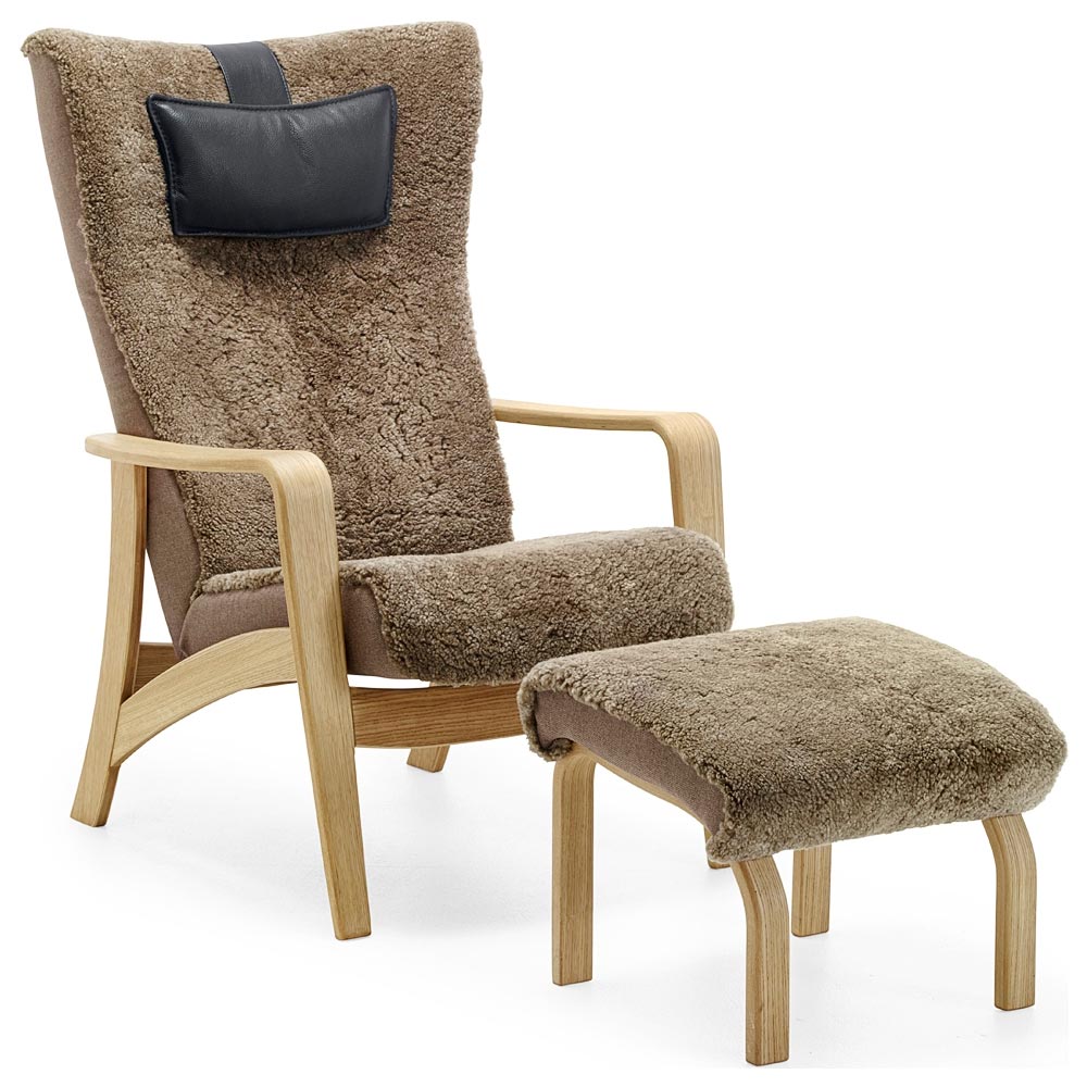 Brilliant fåtölj inkl. pall – fårskinn sahara/ ek