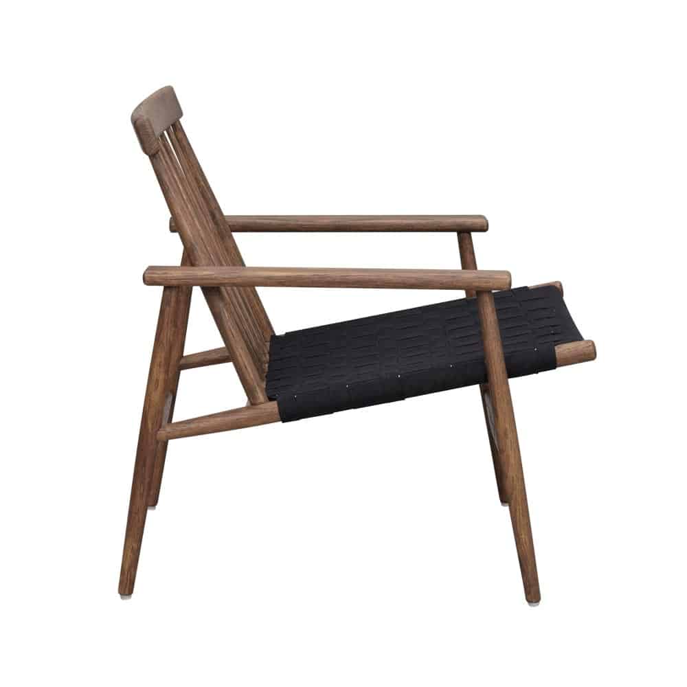 Canwood loungestol i brunoljad ek/ sits i svart flätad sadelgjord (bomullsband) från Rowico.