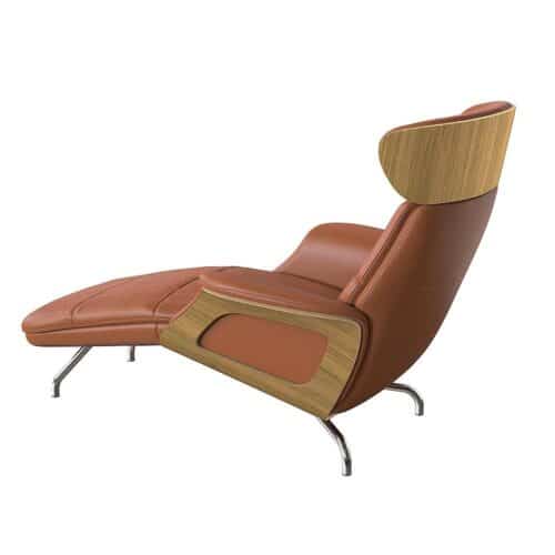 Clement chaiselong – läder savoy henna/ ek/ krom
