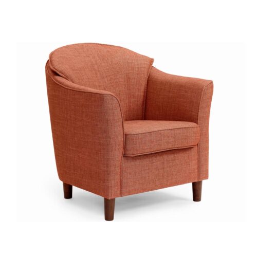 Clubfåtölj 90 – tyg noa 15 tegel/ mörkbruna ben