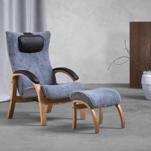 Easy fåtölj inkl. pall – fårskinn graphite/ ek