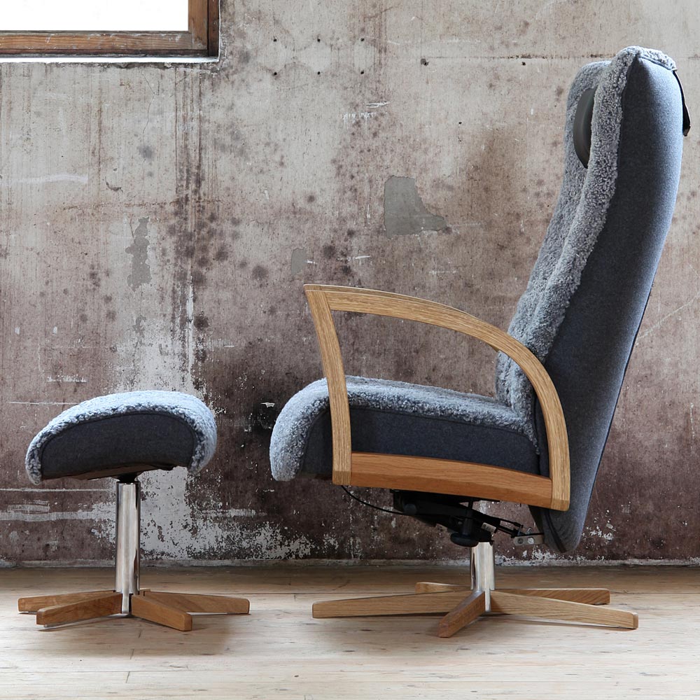 Focus snurrfåtölj inkl. pall – fårskinn grey/ ek