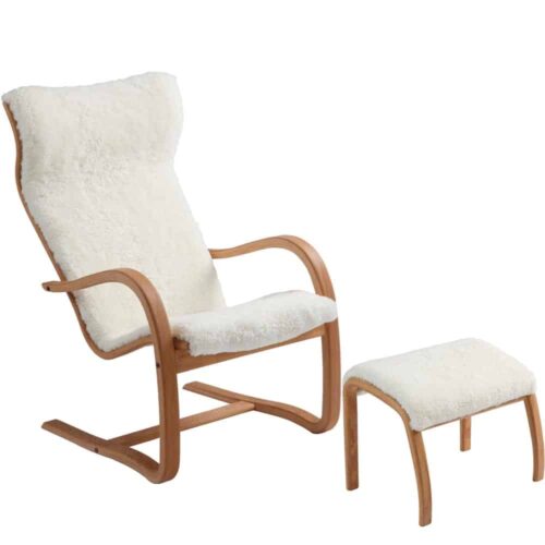 Gazell fåtölj svikt & pall – fårskinn offwhite/ ek