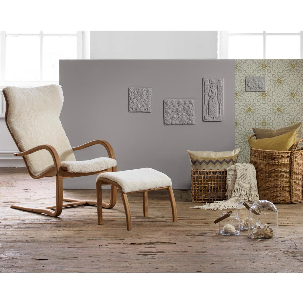 Gazell fåtölj svikt & pall – fårskinn sahara/ ek