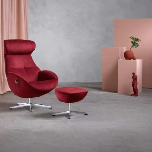 Globe fåtölj och pall från småländska Conform har en vacker och omslutande design och en mycket skön sittkomfort! Design av Jahn Aamodt, Norge.