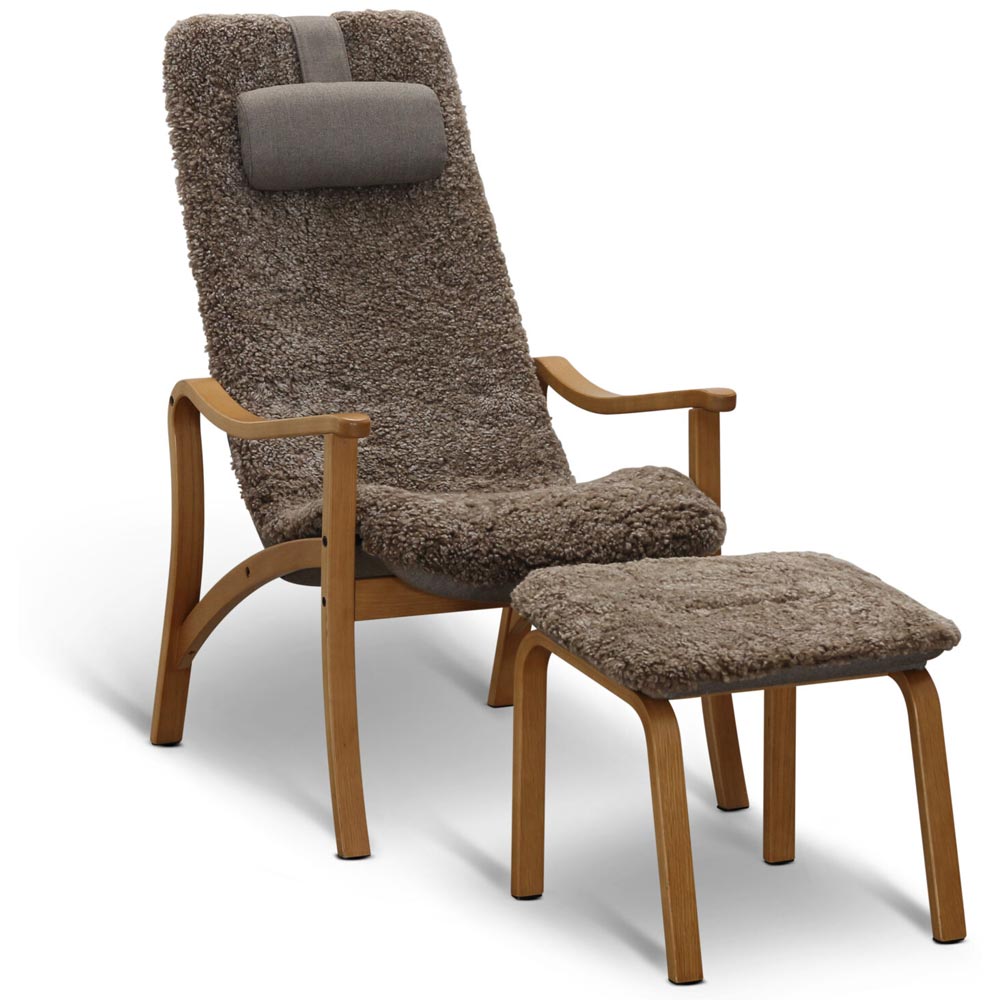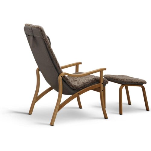 Gotland fåtölj inkl. fotpall – fårskinn sahara/ ek