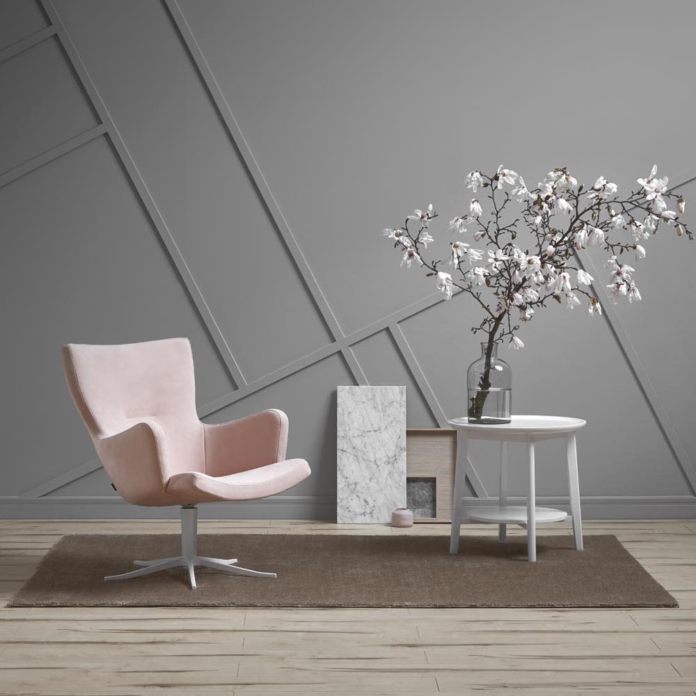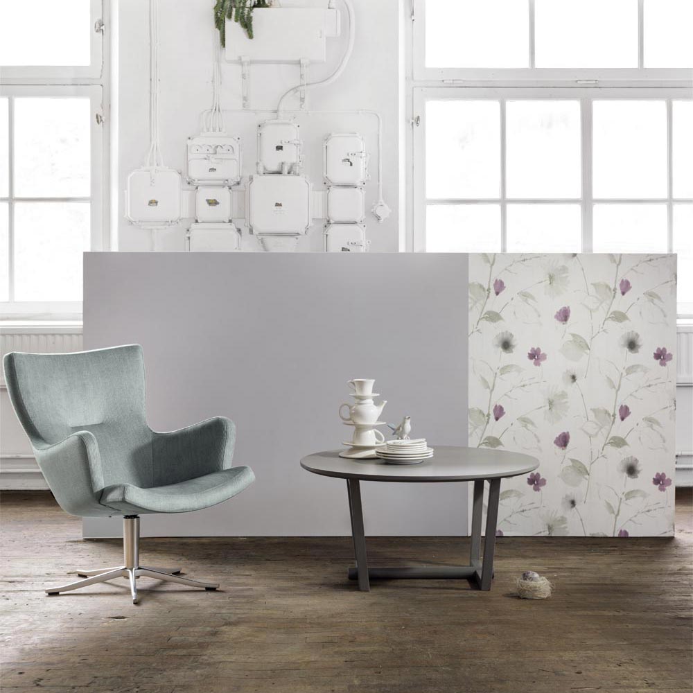 Gyro fåtölj är en lättplacerad möbel med sitt nätta utseende. Underredet har ett så kallat ”return memory”, dvs att den alltid stannar på samma ställe – praktiskt! Underrede i borstad alu/ krom, svartlackad alu eller vitlackad alu.
