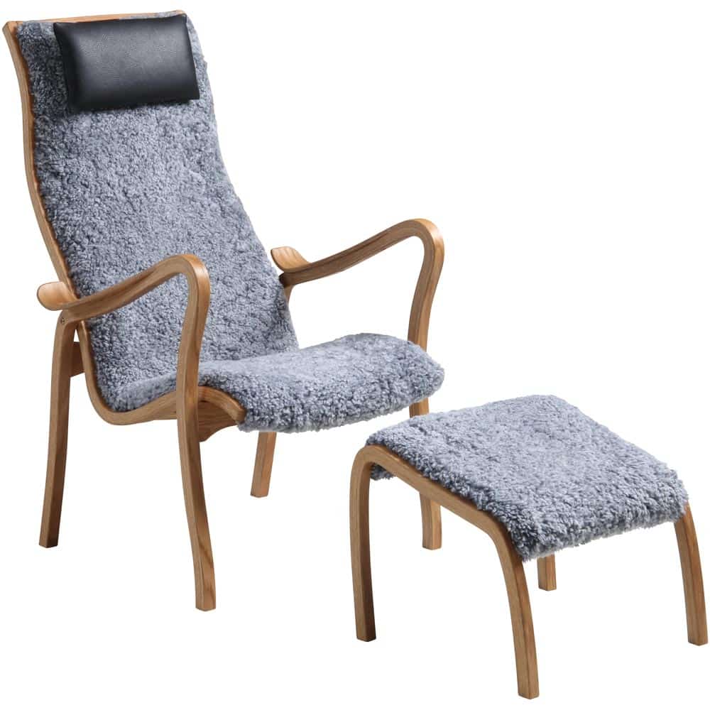Kaptenen fåtölj inkl. pall – fårskinn grey/ ek
