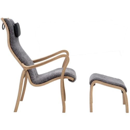 Kaptenen fåtölj inkl. pall – fårskinn scandinavian grey /ek
