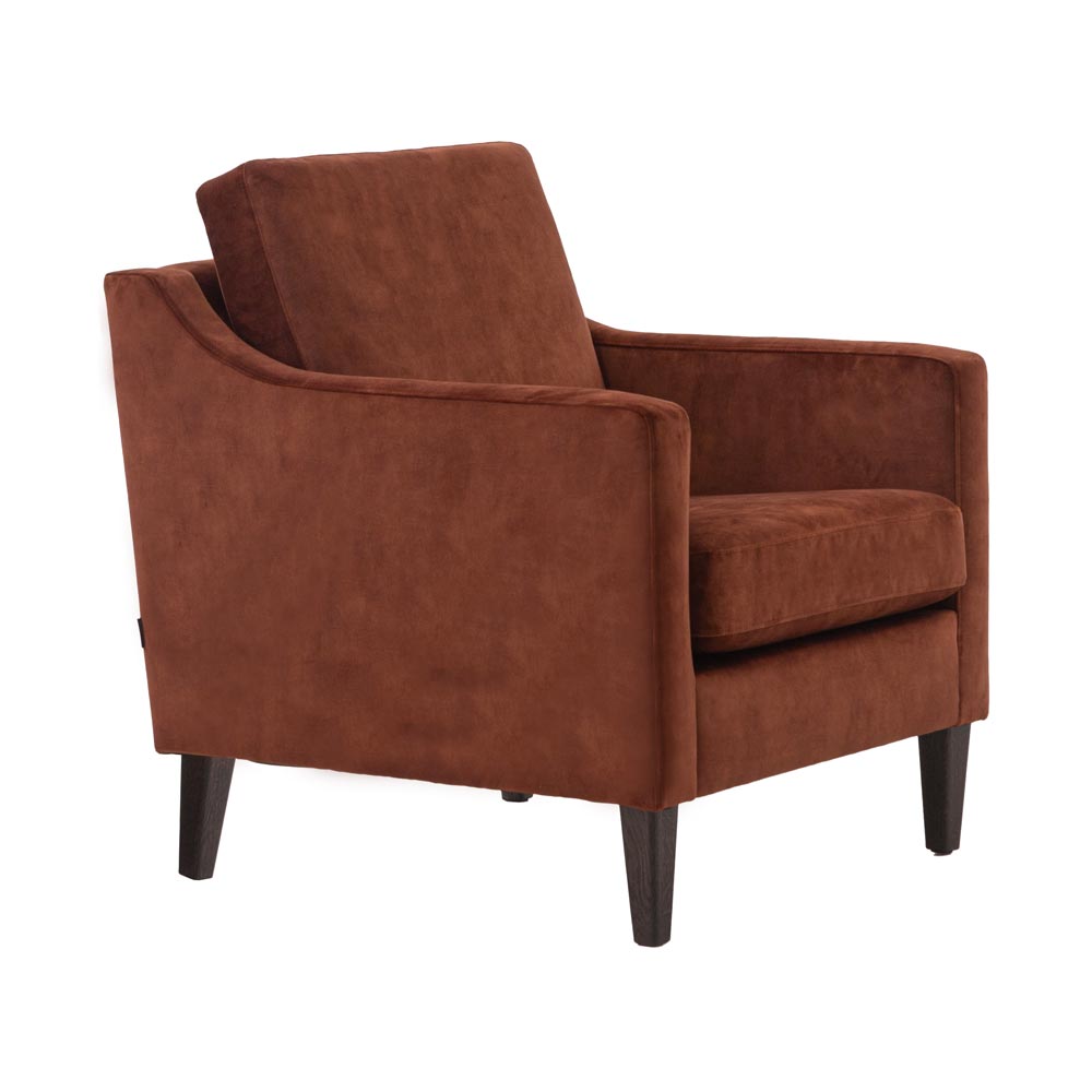 Liza fåtölj från Wilmers i tyg Adore copper/ svartbetsade ben. Liza är en mycket bekväm och snygg fåtölj som passar bra som komplement till en soffa eller kanske några stycken som en grupp runt ett soffbord!