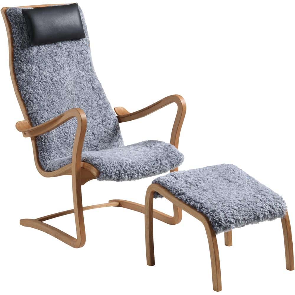 Majoren fåtölj inkl pall – fårskinn grey/ ek