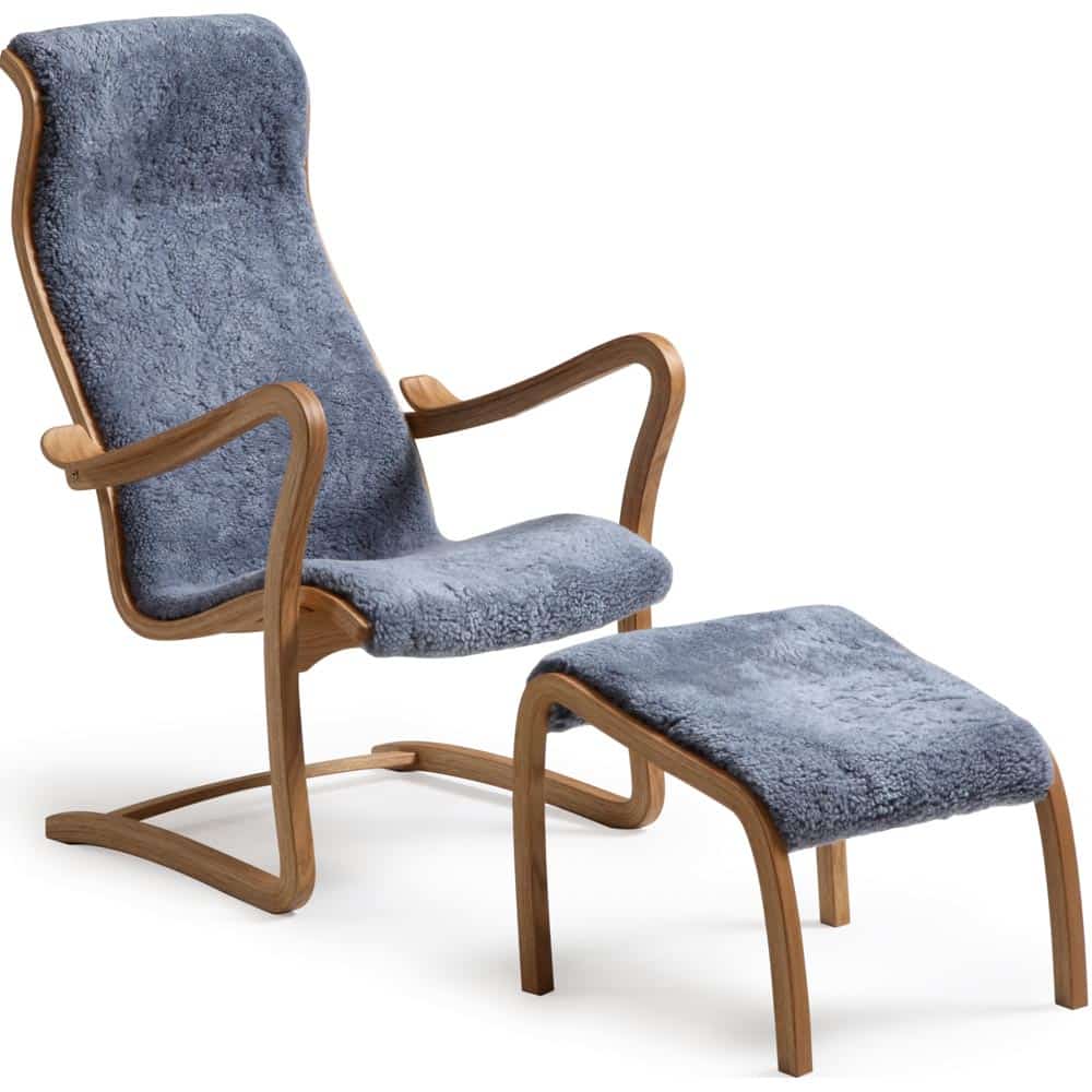 Patronen fåtölj & pall – fårskinn graphite/ ek