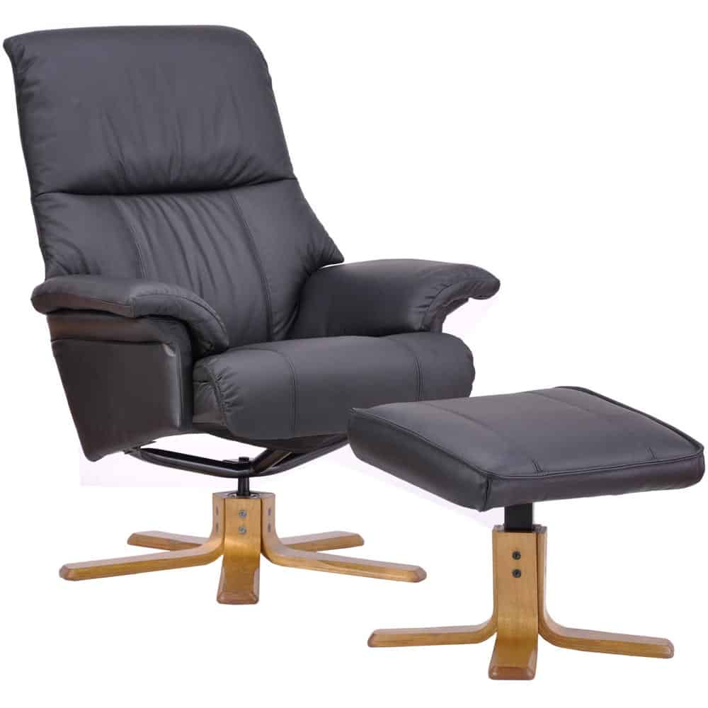 Rhodos fåtölj & pall – läder madras svart/ ekbets