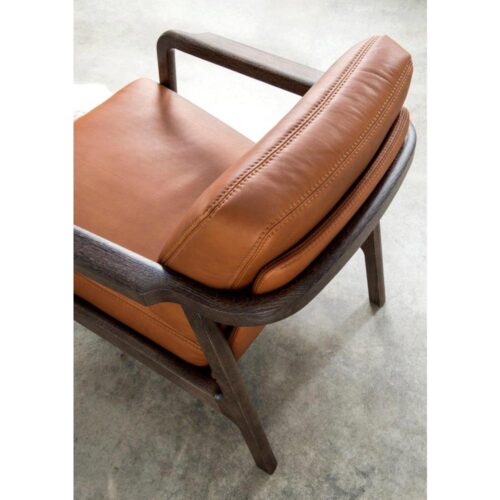 Select fåtölj i läder Sauvage 665 brun/ trädetaljer i rökt ek 280 från finska BD Möbel. Select är en elegant fåtölj med skön sittkomfort och vackra trädetaljer.