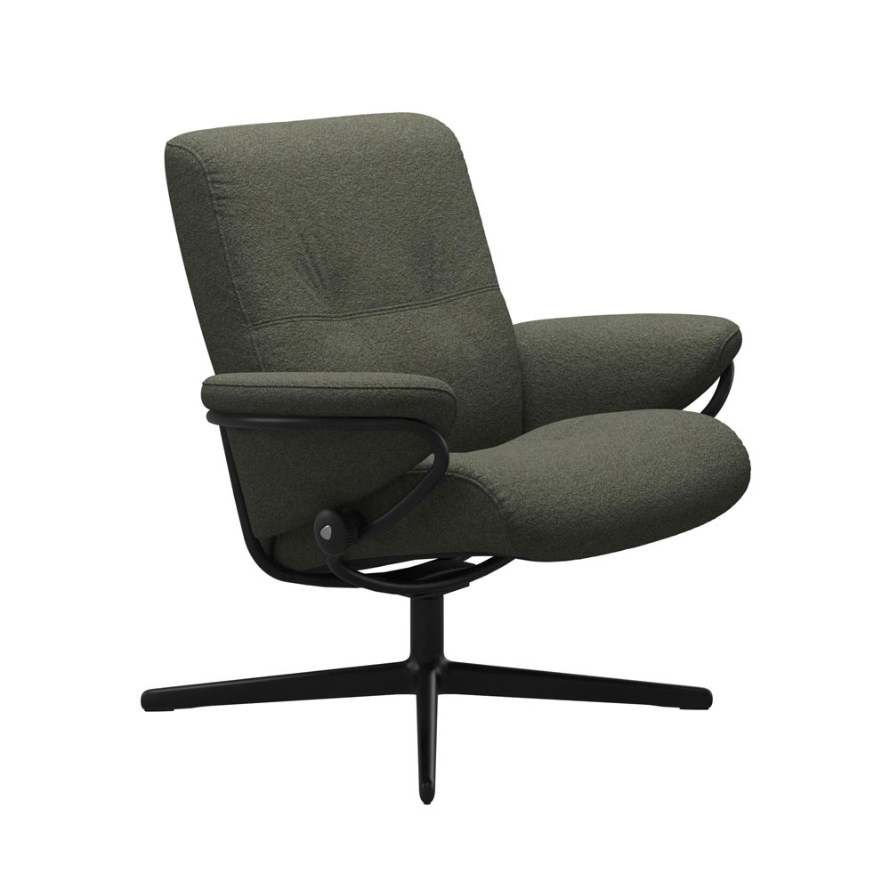 Stressless Berlin fåtölj med låg rygg från norska Ekornes. Tyg Orchid green/ underrede Cross matt svart.
