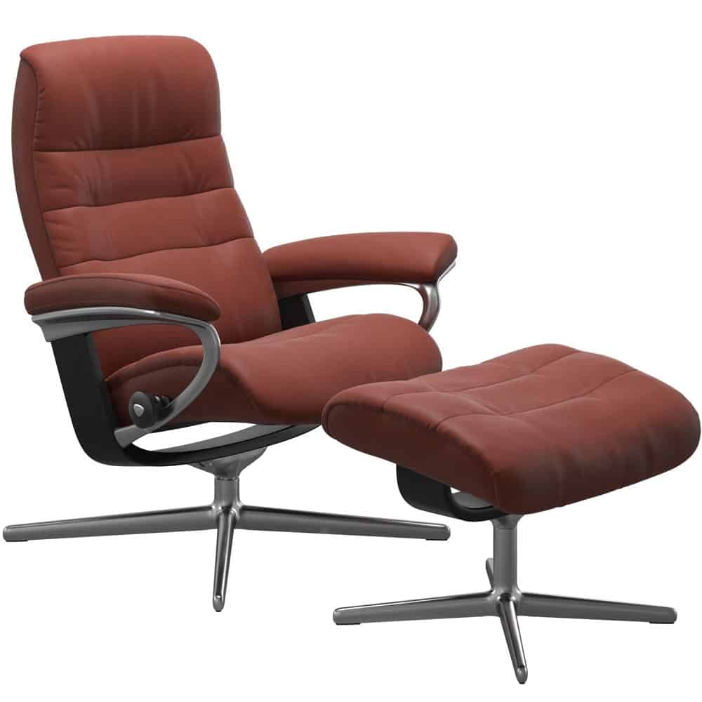 Stressless Opal M fåtölj & fotpall från norska Ekornes. Läder Paloma dark henna/ underrede Cross base alu/ svart trä.