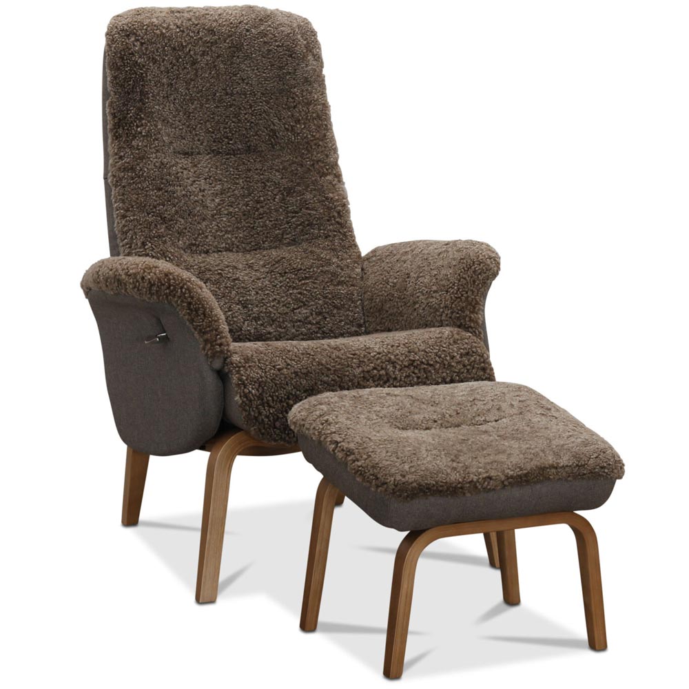 Visby fåtölj inkl. fotpall – fårskinn sahara/ ek