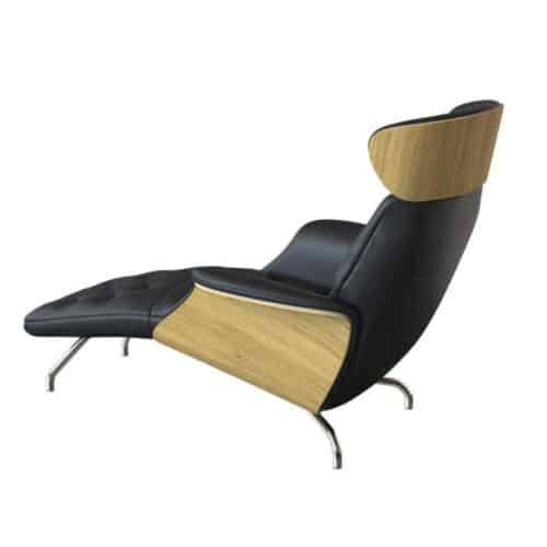 Volden chaiselong – läder savoy black/ ek/ krom