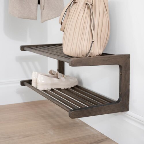 Inverness vägghängt skoställ 80 i brunbetsad ek från Rowico. Inverness har ett klassiskt utryck inspirerad av Orientexpressens tågkupeér.