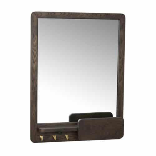 Inverness spegel i brunbetsad ek/ mässingsfärgade krokar från Rowico. Inverness har ett klassiskt utryck inspirerad av Orientexpressens tågkupeér.