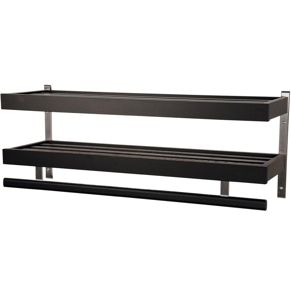 Nadja hatthylla 2 plan 80cm i svartbetsad ek/ slipat stål. Exklusiv design tillverkad av småländska Oscarssons Möbel.