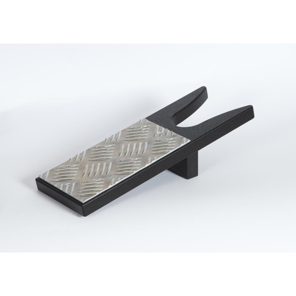 Raskens stövelknekt i svartbetsad ek/ durkplåt i aluminium från småländska Westroth. Raskens stövelknekt är en mycket uppskattad hjälp när stövlarna och skorna sitter tight!