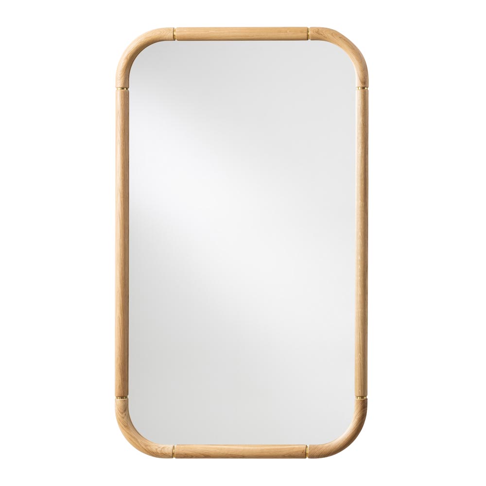 Hornavan spegel från Sesvan är en rektangulär spegel med ram i trä av högsta kvalitét. Mässingsringarna i träramen ger spegeln en lyxig känsla. Hornavan spegel är en vacker inredningsdetalj för sovrummet, vardagsrummet, eller varför inte i hallen?